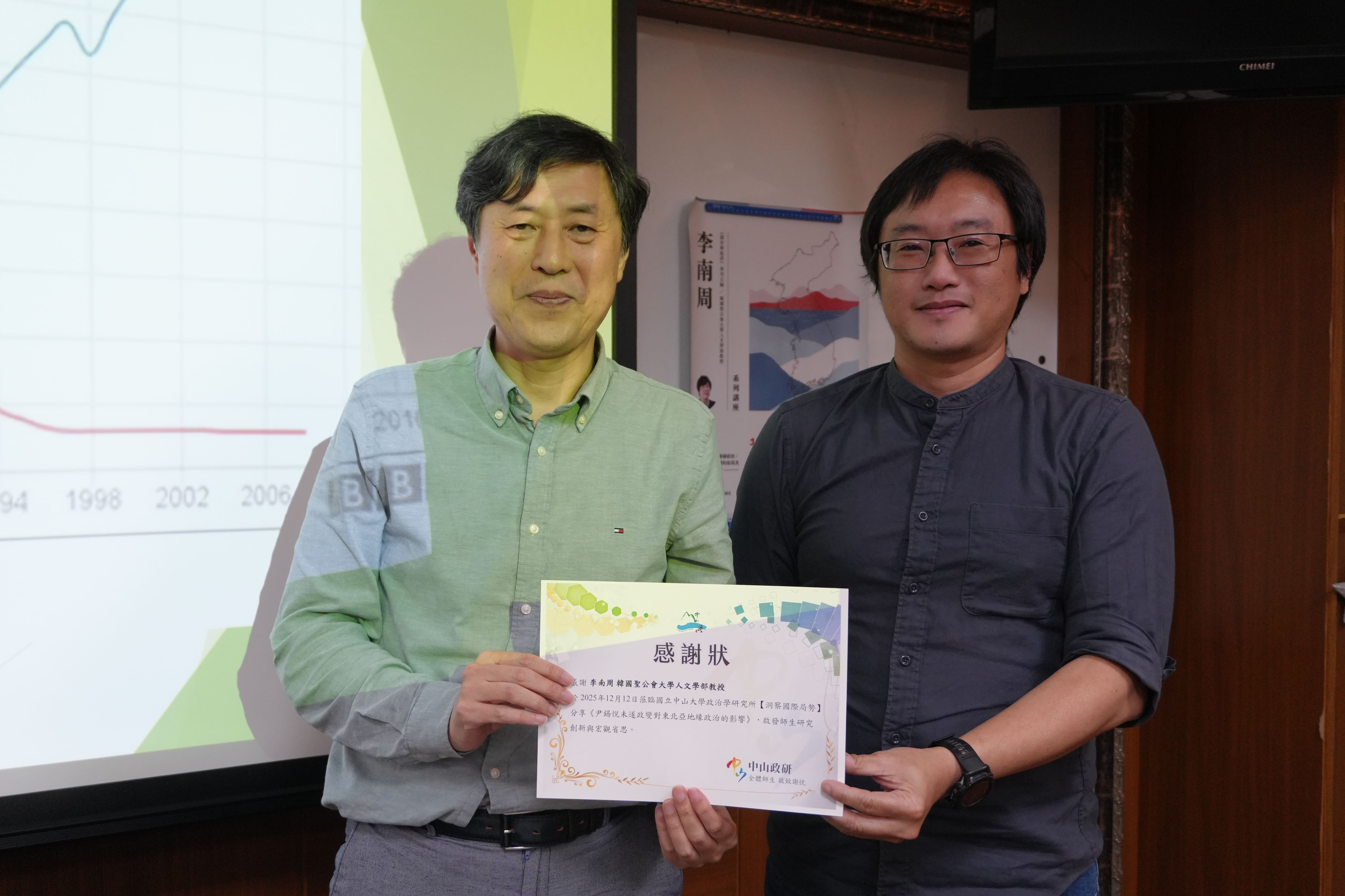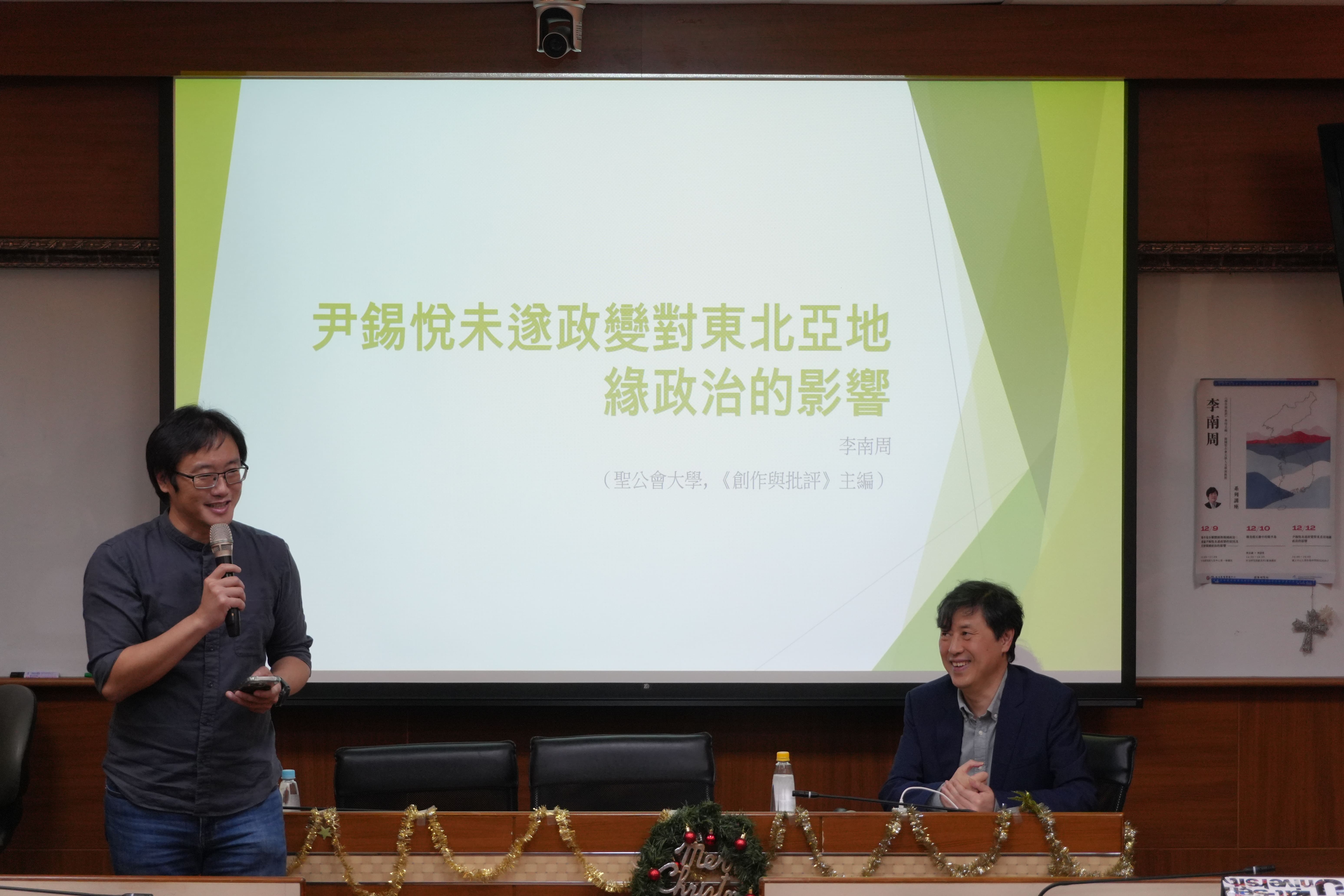 講題:尹錫悅未遂政變對東北亞地緣政治的影響 主講人:李南周 時間: 12/12 14:00–16:00 地點:國立中山大學社會科學院SS3010-2 演講簡報 主辦單位:中央研究院人社中心政治思想研究專題中心、中央研究院歐美研究所、中山大學政治學研究所