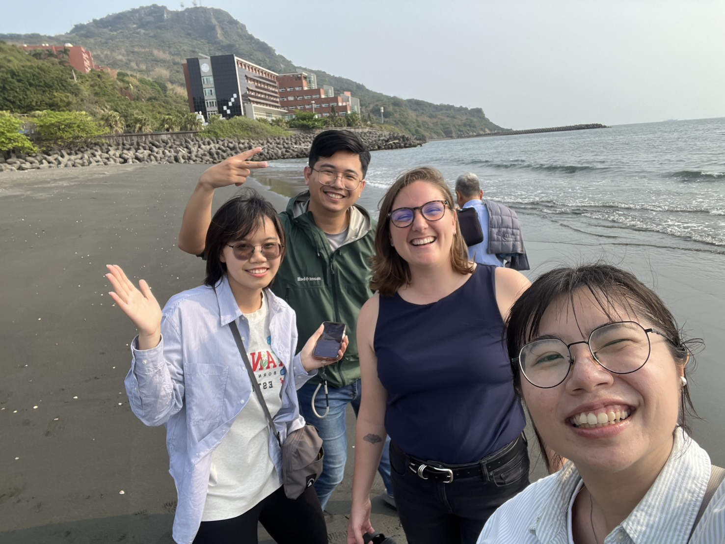 本所張晉赫教授邀請其母校美國Rice University的Center for Civic Leadership 副主任 Kelsey Ullom 至本所參訪及交流。參訪期間,Kelsey Ullom 與所上教授進行對談,在席間,本所準備了在地小吃紅豆餅以及大家都喜愛的珍珠奶茶與 Kelsey Ullom分享,希望能展現出南部特有的熱情。除了教師間的交流,後續的校園導覽也有三位政治所同學參與,透過學生的視角分享學習經驗及校園生活讓來訪貴賓得以從學生視角,更貼近地感受政治所的學習氛圍與校園文化。此外,行程中特別安排至海邊踏浪,也讓來訪貴賓親身體驗中山大學依山傍海的校園特色。最後於校園一隅輕鬆敘談,自在而溫暖的氛圍中,延續對交換學生互動、學術合作的討論。此次的參訪不僅深化了Rice University與本校的互動,也透過師生共同參與,展現出本所對國際交流與師生對話的重視,並為未來更多元且緊密的合作關係奠定基礎。